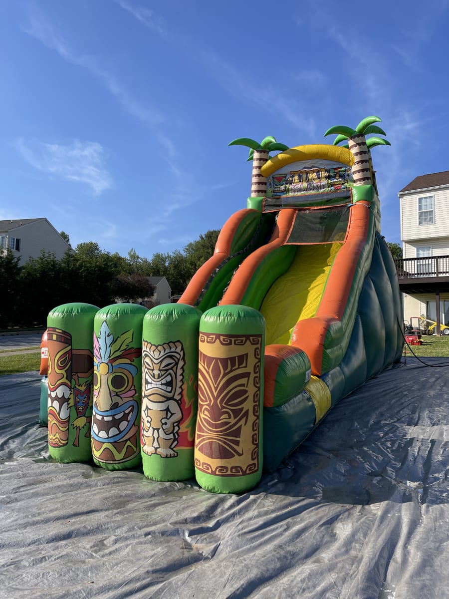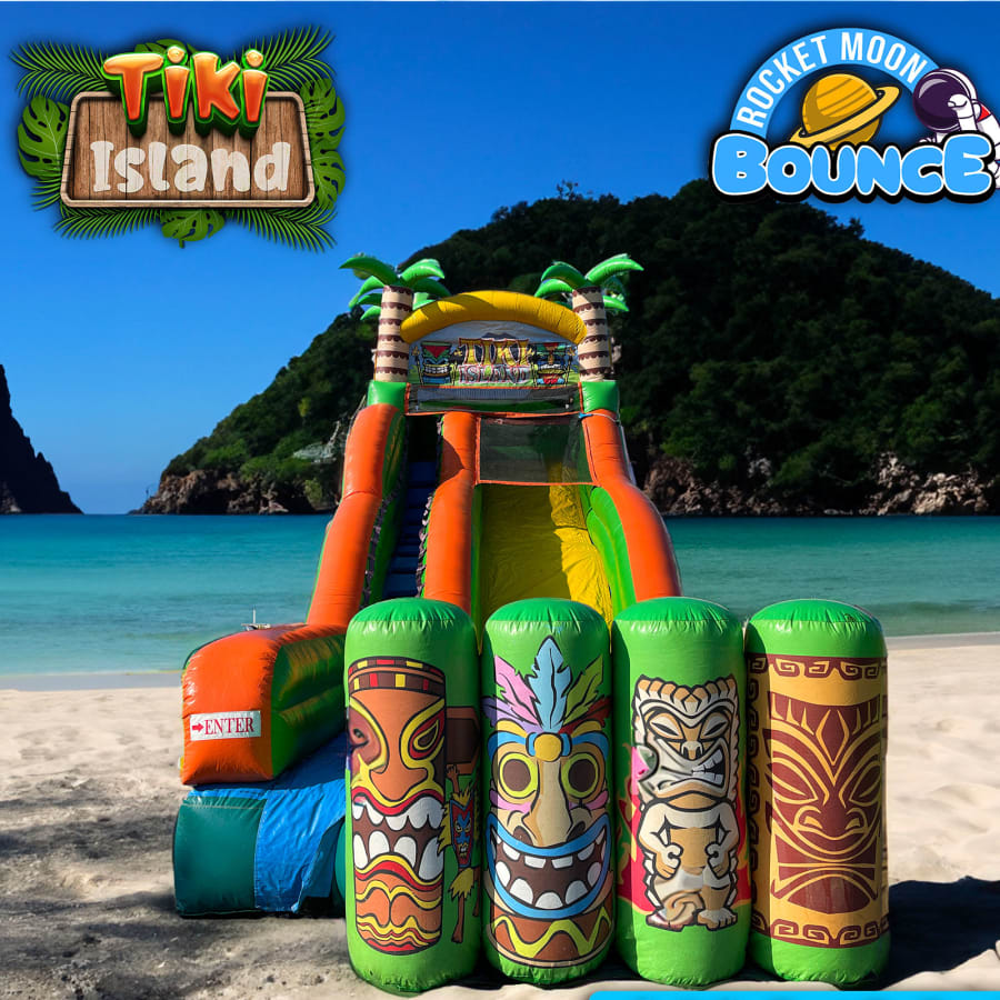 Get ready for some splash-tastic fun with our Tiki Island Water Slide! 🌴 Perfect for both kids and adults, this tropical-themed water slide will bring endless enjoyment to your next event or party. Say goodbye to boring pool landings - our water slide features a thrilling splash landing that adds an extra element of excitement. 🌊
